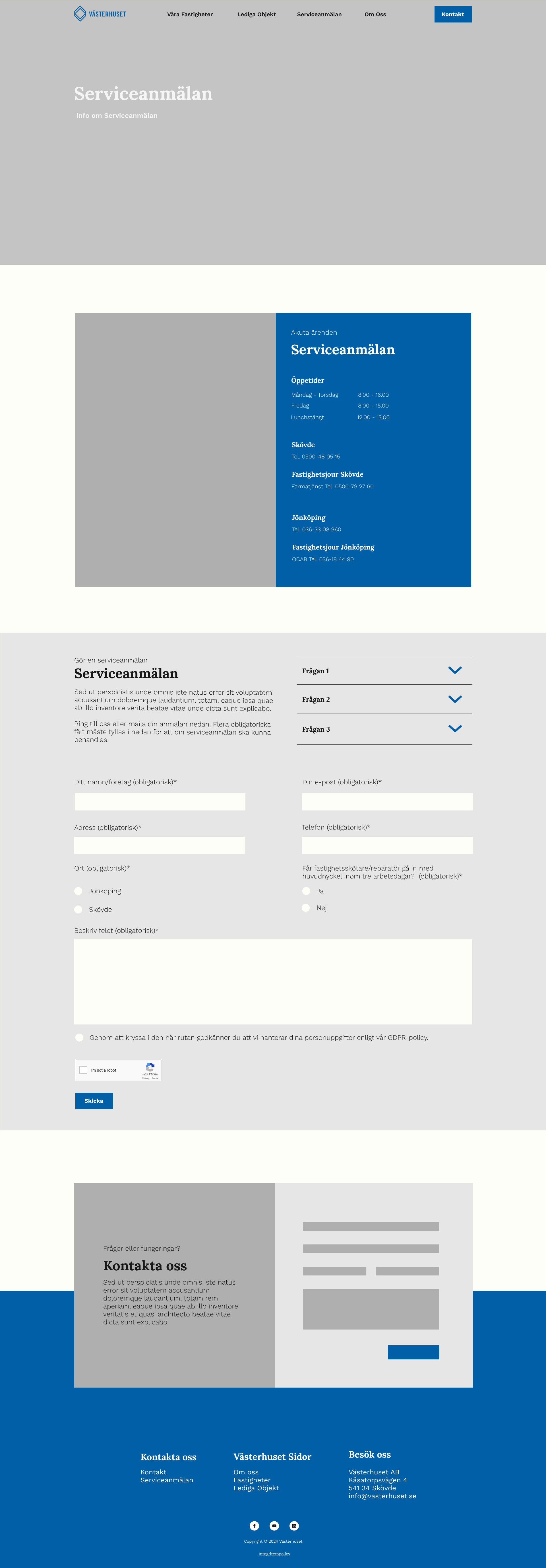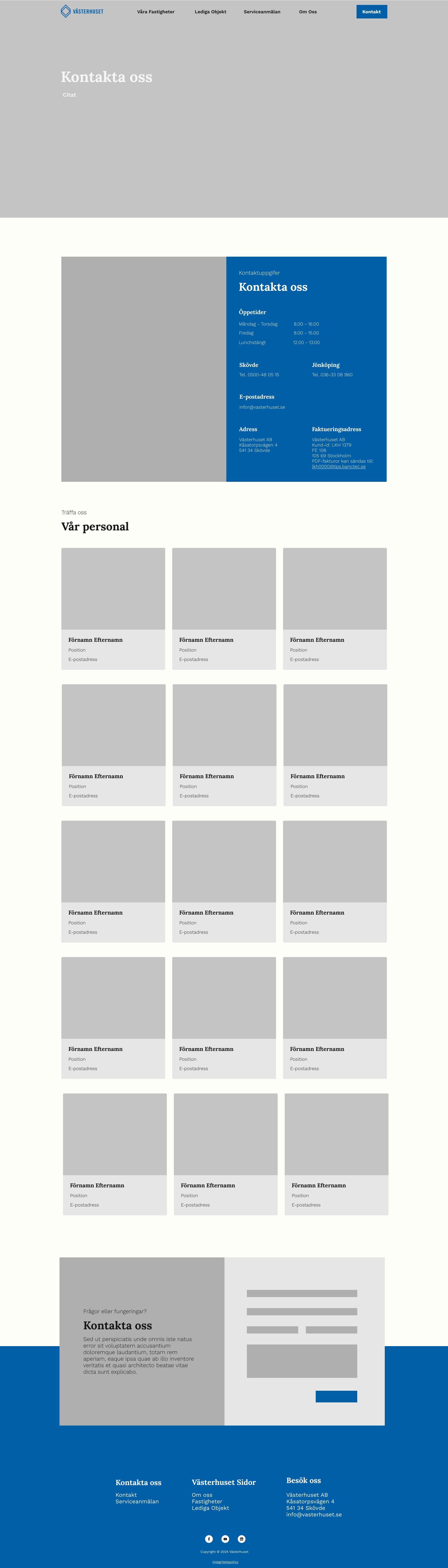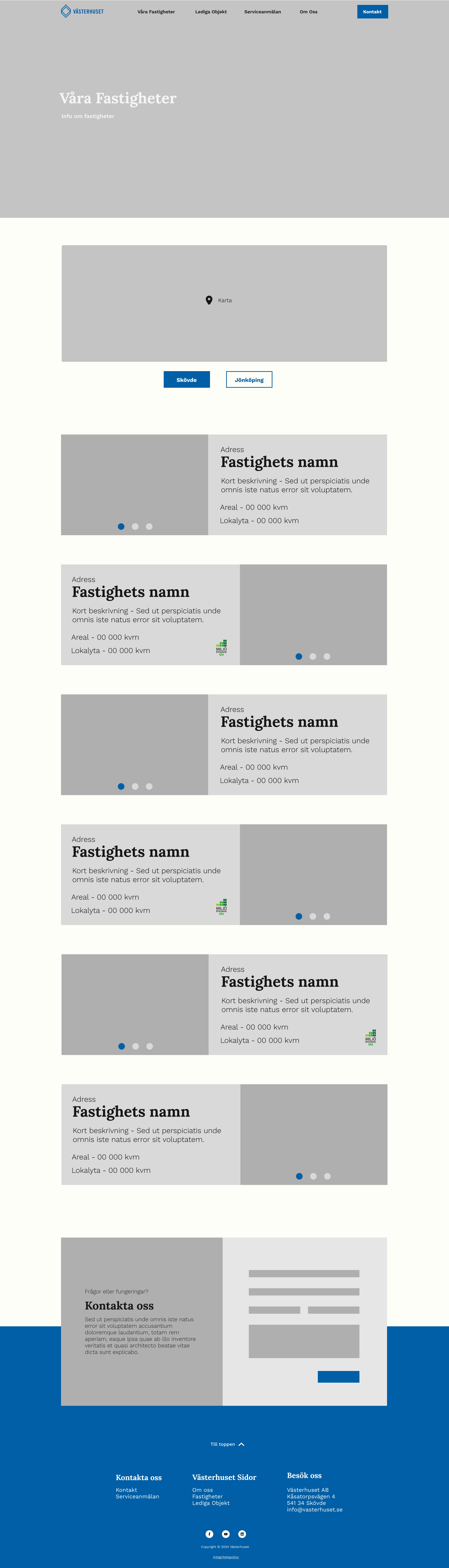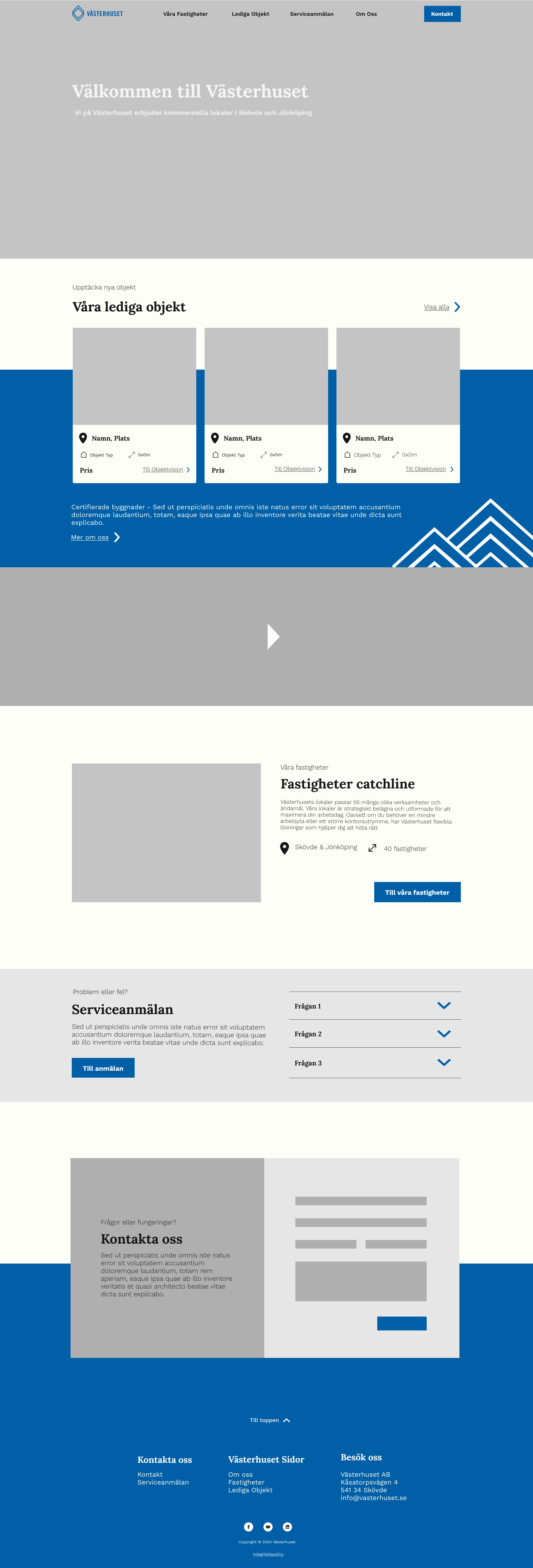 This project, done through a student consultant opportunity in collaboration with Drivhuset, focused on modernising Västerhuset’s website and bringing it more in line with the company’s brand and identity. The main goal was to improve both the look and usability of the website, making it easier for visitors to navigate and for employees to manage.